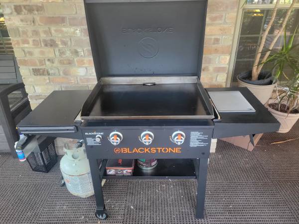 Blackstone-28-in-xl-3-burner-omnivore-griddle--Includes Cover and Propane Cost new is $349 and does not include a cover or propane tank. This does Used once and in perfect condition.