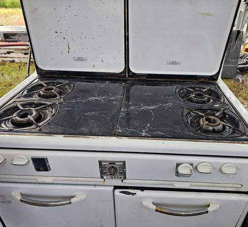 Antique Roper gas stove. 4 burners 1 oven. I got it as part of my payment for a make ready and it works. Needs some clean up and TLC. I can't seem to find any tag on it with actual date but research...