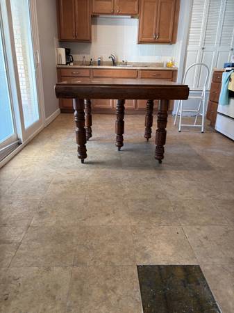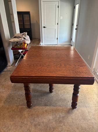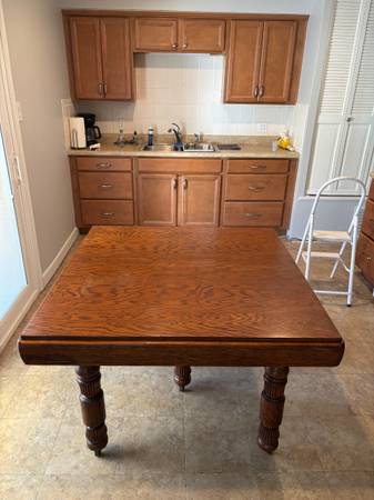 Hardwood dining room table. 43” square, expands to 71”. Solid