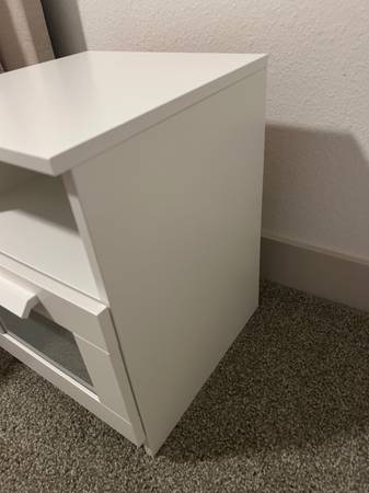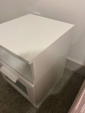 I’m like new perfect condition pair of Ikea white Brimes nightstands. Got them 4 months ago and look brand new!