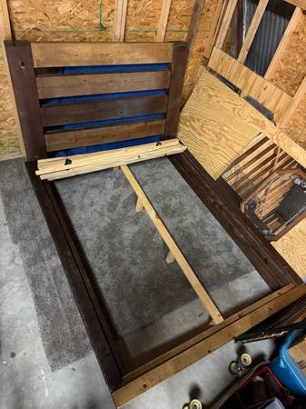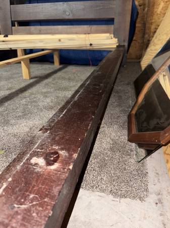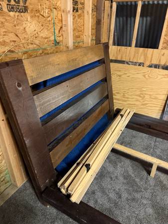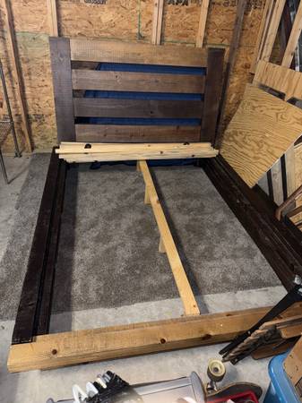 Queen Size Wood Bed Frame with distressed look and style. Pieces are light weight. $100 OBO. Pick up only. Cash or Venmo only.
