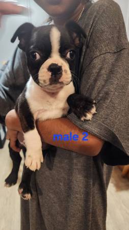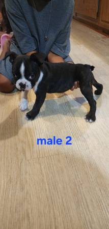 Full blood boston terrier puppies. Both males. 8 weeks old. They have 1st shots and have been dewormed. Contact for more information and rehoming fee.