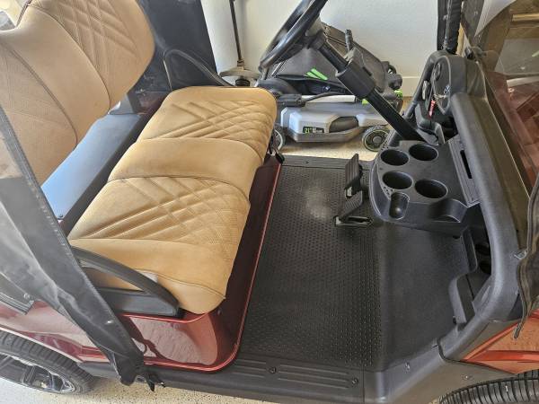 2024 EZGO RXV w/Madjax Body. Includes: weather cover, bag umbrella, club/ball washer, cooler, sand bottle, tinted windshield, custom wheels, custom suede seats, 2 mirrors, lithium battery, happy...
